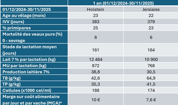 Nous avons réalisé un bilan annuel (de décembre 2024 à novembre 2025) sur les performances du troupeau intégrant également le volet économique au travers de la MCA (marge sur coût alimentaire par vache).